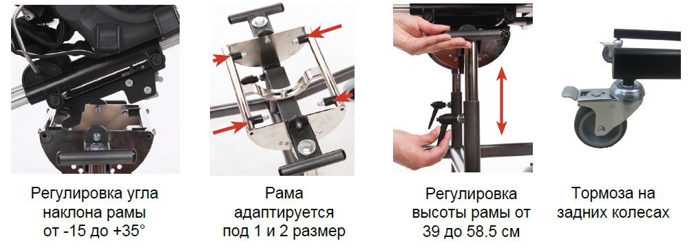 • Растет вместе с пользователем (регулировка ширины, глубины сиденья, высоты спинки, подножки)