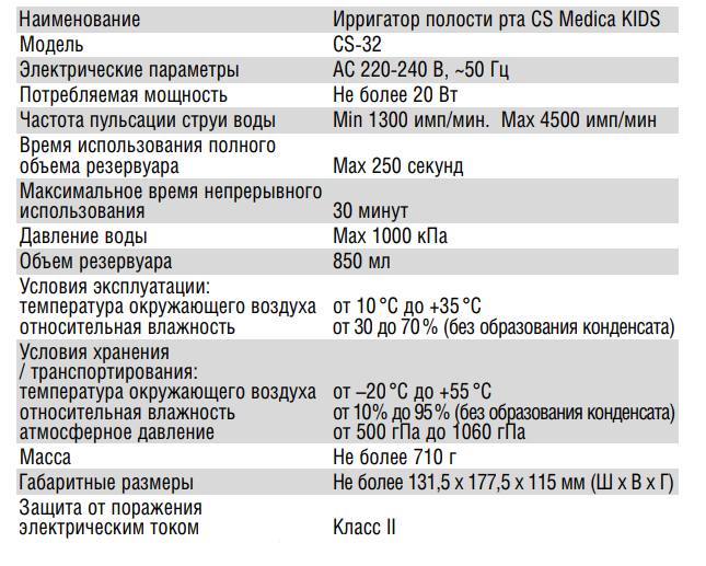 Ирригатор полости рта CS Medica KIDS CS-32 –предназначен для проведения гигиенических процедур полости рта в домашних условия как детьми, так и взрослыми, при этом достигается эффект очищения труднодоступных мест, интенсивного гидромассажа десен, терапии и профилактики пародонтальных болезней полости рта.