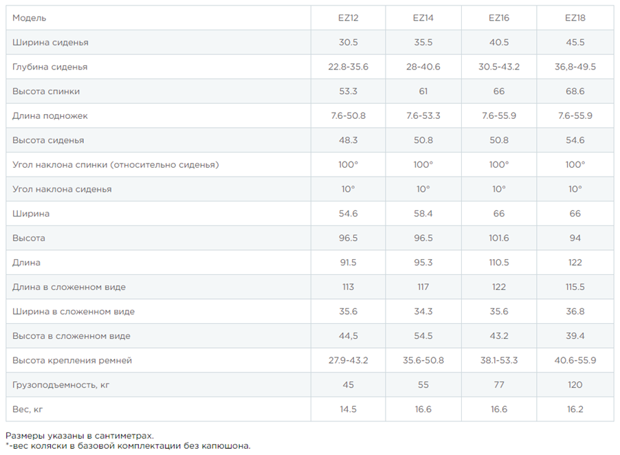 Технические характеристики инвалидной коляски EZ Rider для детей с ДЦП: